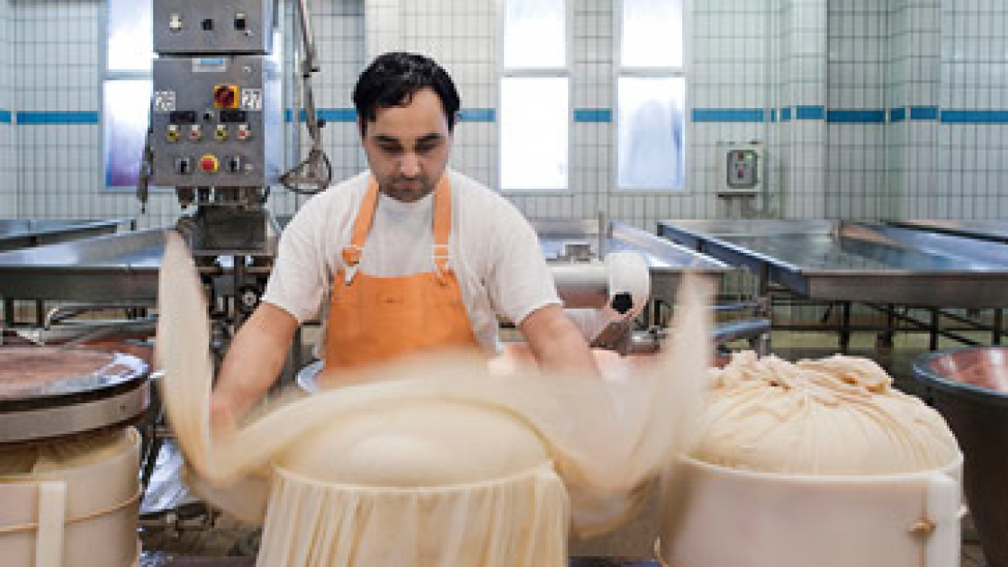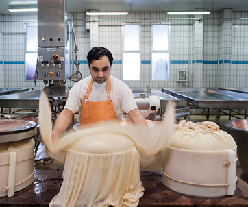 Novellara (Reggio Emilia). Jasininder Singh, indiano, prepara le forme di Parmigiano Reggiano nell'azienda casearia San Giovanni. Foto: Giulio Piscitelli/contrasto
