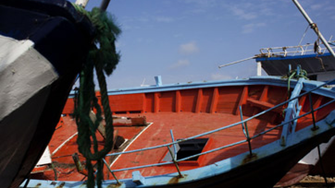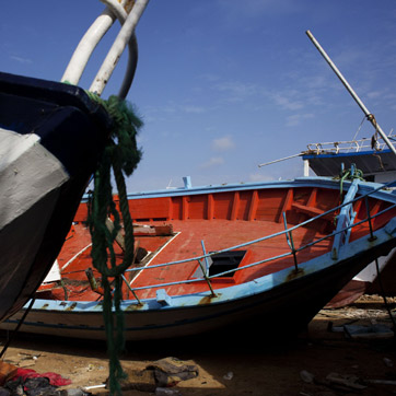 Un barcone vuoto a Lampedusa. Foto di Emiliano Mancuso/contrasto