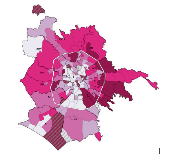 Fonte: Lelo, Monni e Tomassi, www.mapparoma.info/mappe/mapparoma32-reddito-dei-romani