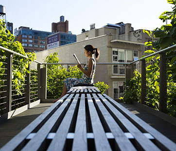 Una sosta di lettura e relax all'interno dell'High Line park di New York, realizzato lungo un ex percorso ferroviario. Foto: Reuters/Lucas Jackson