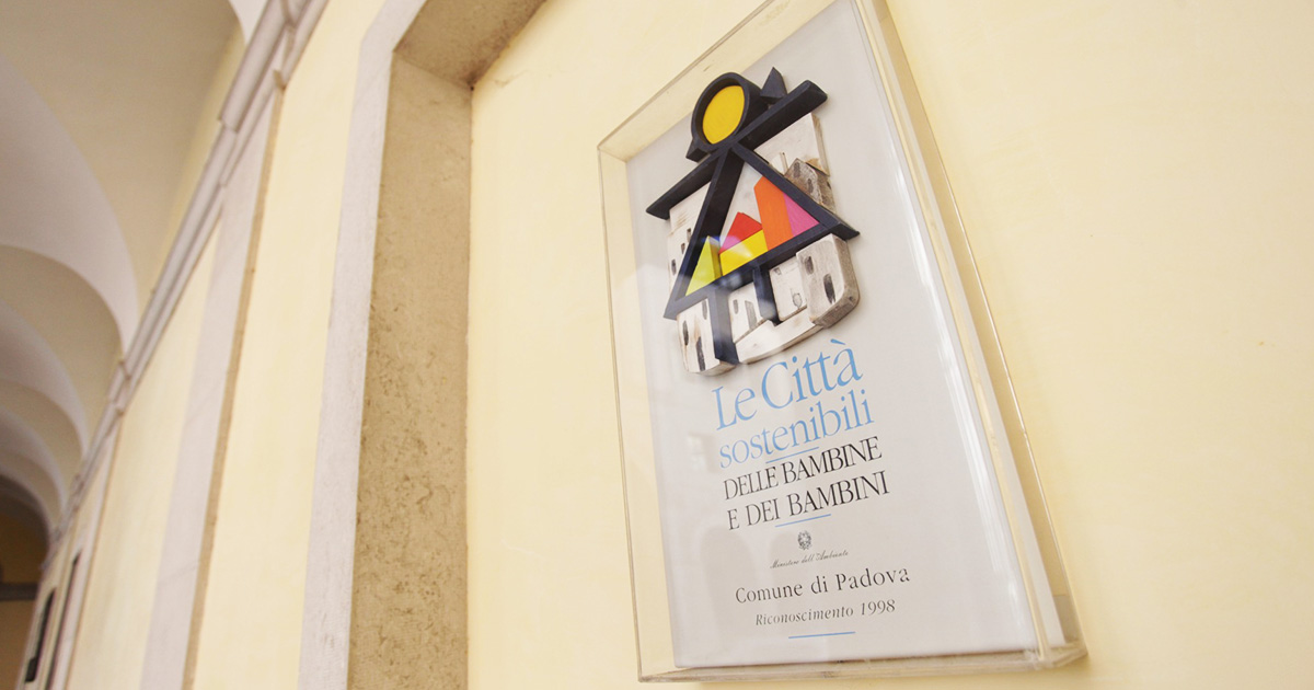 Se vi è capitato di fare le scale di Palazzo Moroni,dove ha sede il municipio di Padova, avrete visto la targa con un grazioso logo, un quadro composto di figure geometriche in tre dimensioni, disegnate e colorate. Si vede in punta di piedi una bimba con grembiule sopra quattro differenti edifici stilizzati, si tratta di un premio ricevuto, il riconoscimento ufficiale del ministero dell’Ambiente alle “città sostenibili delle bambine e dei bambini”! Forse qualcuno lo ricorda, fu assegnato nel 1998, venti anni fa, al comune, che aveva in corso il progetto “Padova, la città educativa, la città per i bambini – i bambini per la città”.