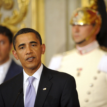 Obama durante un incontro ufficiale al Quirinale. Foto Paolo Tre/A3/Contrasto
