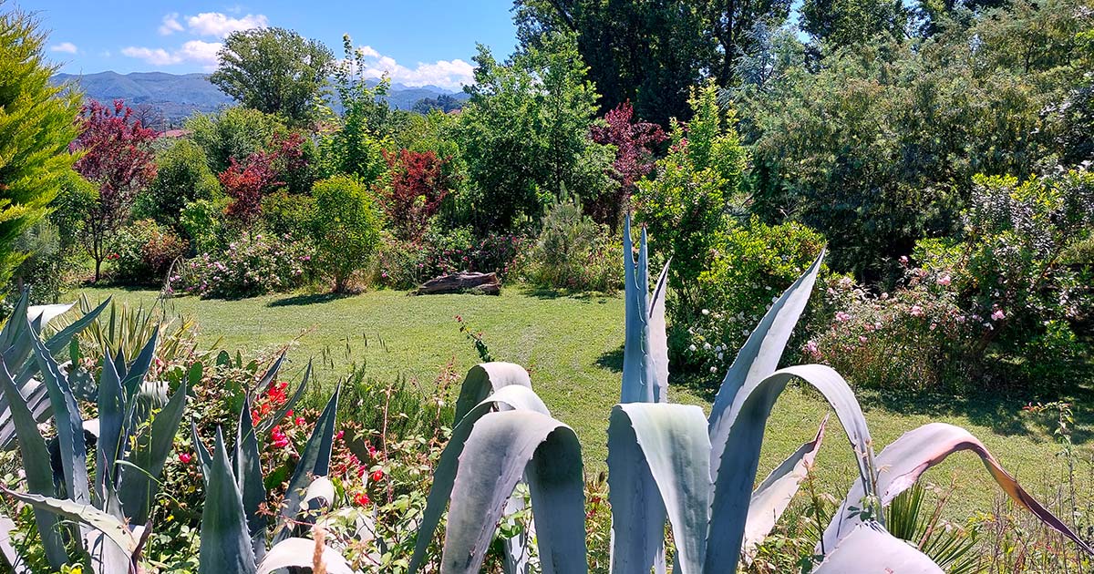 Il giardino sensoriale e didattico è privato, facilmente visitabile su appuntamento con prenotazione, già spesso affollato di scolaresche; se si è sensibili all’appetito delle zanzare meglio evitare i mesi più afosi e siccitosi (come quelli dell’estate scorsa 2024, non vi è piovuto mai per almeno 45 giorni); organizzato a tre balze. La prima balza è un uliveto misto di macchia mediterranea, circa quattromila metri quadrati anche di siepi, cipressi e pioppi, essenze e rose in dinamica cromatica, con panchine e spazi per eventi pubblici (spesso organizzati col bel tempo e la collaborazione di associazioni culturali locali). La seconda balza fa riferimento al bioma arido, allori e felci preistoriche, due mila metri quadrati, la terza al bioma umido, seimila metri quadrati. Confinano con la seconda cinta seicentesca delle mura di Sarzana (la prima è medievale) e con l’antico canale irriguo Lunense del Magra, lungo circa ventitré chilometri tra Toscana e, prevalentemente, Liguria (Luni era la famosa colonia romana della zona, fondata come avamposto militare nel 177 a.C.).