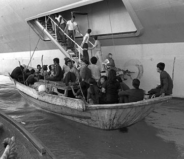 Tanti cercano di fuggire via mare verso Thailandia, Malesia e Indonesia, spesso provvisti solo di imbarcazioni di fortuna: migliaia di loro, forse centinaia di migliaia, periscono tra le onde e a causa dei pirati, altri sono falcidiati nei campi profughi dalla fame e dalle malattie. Ma c’è anche chi ce la fa, come la giovane To Cam Hoa, che oggi è sposata e vive vicino a Treviso: “Il viaggio durò in totale due mesi, tra cui 15 giorni sulle coste della Malesia, vivendo situazioni drammatiche e selvagge, senza nessun mezzo per poter sopravvivere...”. Nei paesi vicini i profughi vengono infatti trattati con brutalità: la famiglia Hoa (12 persone tra cui nonno, bisnonna e tre bambini), viene obbligata assieme a oltre 100 profughi a risalire sulla barca con cui è arrivata, che viene rimorchiata al largo e quindi abbandonata alla deriva assieme a tante altre. “Tra un respingimento e l'altro siamo rimasti poi 15 giorni in mare aperto – ricorda oggi la donna – incastrati come sardine in piccole imbarcazioni col motore scassato e totalmente inadatte per la navigazione sull'oceano. Il tutto in condizioni pietose e affrontando i peggiori scenari possibili: minacce di morte, stupri, aggressioni di pirati, fame, sete, tempeste e persino episodi cannibalismo...”. Finché, a circa 300 chilometri da Singapore, viene raccolto dalle navi italiane, mandate dal governo in una missione di salvataggio sull’onda dell’indignazione popolare.