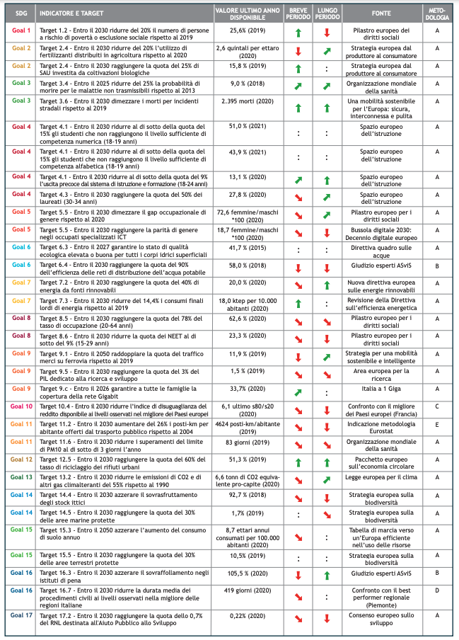 “Questa seconda edizione del Rapporto - ha dichiarato Marcella Mallen, presidente di ASviS - conferma l’impegno dell’Alleanza a volersi mettere a disposizione per aiutare a individuare i punti di forza e le criticità esistenti, e per disegnare le politiche per rispondere alle sfide dell’Agenda 2030”. Sfide che sono ancora maggiori a causa di questi ultimi due anni. Il periodo pandemico infatti, ha aggravato il forte ritardo forte ritardo nell’attuazione dell’Agenda 2030 ed ha evidenziato come in molti casi le disuguaglianze economiche, sociali e ambientali siano in aumento nel nostro Paese.