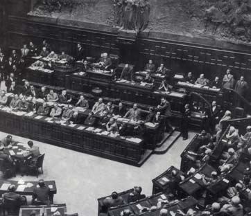 La prima seduta dell'assemblea Costituente nel 1947 sotto la presidenza dell'onorevole Orlando. Foto: archivio GBB