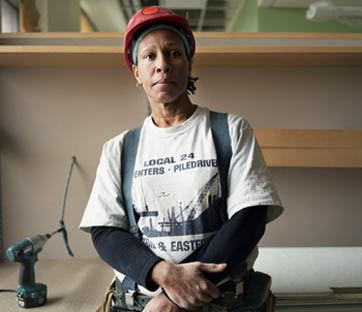 Lisa, 44 anni, carpentiera, lavora nella costruzione di un nuovo laboratorio alla Yale University. Foto: Rocco Rorandelli/TerraProject/contrasto