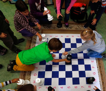 Budapest, ottobre 2013. Bambini giocano a scacchi nella scuola Dezso Lemhenyi. Foto: Reuters/Laszlo Balogh