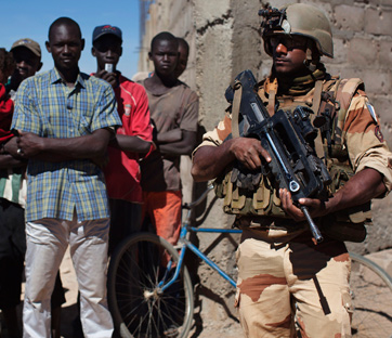 Soldato francese nel villaggio di Diabaly, Mali, gennaio 2013. Foto: Joe Penney / Reuters