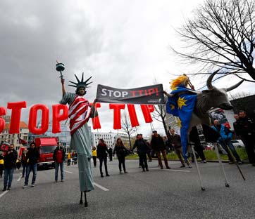 Proteste contro il TTIP. Foto: Reuters/Kai Pfaffenbach