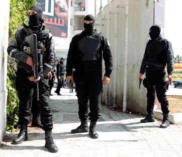 Agenti di polizia appostati all'esterno del parlamento di Tunisi. Foto: Reuters/Zoubeir Souissi