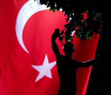 Un supporter del presidente Erdogan in piazza nei giorni successivi al fallito golpe. Foto: Reuters/Ammar Awad