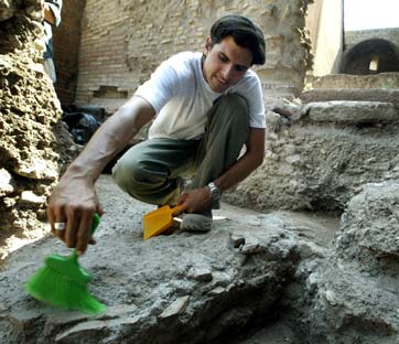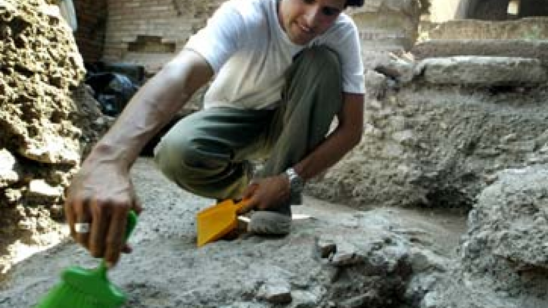Un archeologo lavora agli scavi della casa di Caligola nei Fori imperiali, Roma. Foto: Reuters