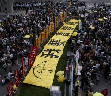 A guidarle furono la federazione degli studenti dell’università di Hong Kong e il movimento studentesco Scholarism. Cominciarono occupazioni e marce di protesta, scioperi e altri atti di disobbedienza civile. Le varie anime della protesta vennero etichettate come umbrella movement e si caratterizzarono per l’adozione di un fiocco giallo come simbolo di riconoscimento. Vi furono manifestazioni per tutto l’autunno del 2014 e occupazioni di importanti edifici pubblici durate fino a 79 giorni consecutivi, talvolta represse dalla polizia con l’uso di lacrimogeni e spray urticanti. Manifestazioni di solidarietà si tennero in molte piazze e atenei occidentali, specie negli Stati Uniti e in Gran Bretagna. La protesta andò poi lentamente scemando e con essa anche l’attenzione mediatica internazionale. Nel giugno scorso il parlamento cinese ha deciso di ritirare la riforma, lasciando quindi in vigore il sistema elettorale precedente.