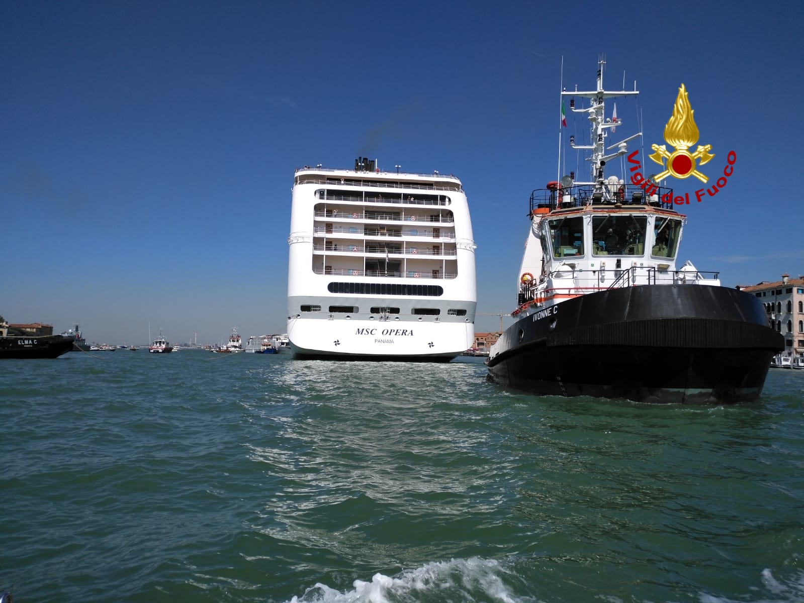 Le dinamiche sono ancora in corso d’accertamento ma sembra che la nave MSC Opera abbia avuto un’avaria ad un motore, che si sarebbe bloccato in spinta ed i due rimorchiatori che sono sempre utilizzati per garantire la sicurezza durante il transito delle imbarcazioni di questo tipo attraverso il canale della Giudecca, non siano riusciti a bloccarla. Ad uno di loro inoltre, nello schianto con il vaporetto si è tranciato il cavo di traino, dando di fatto via libera alle 65 mila tonnellate della nave verso il pontile.